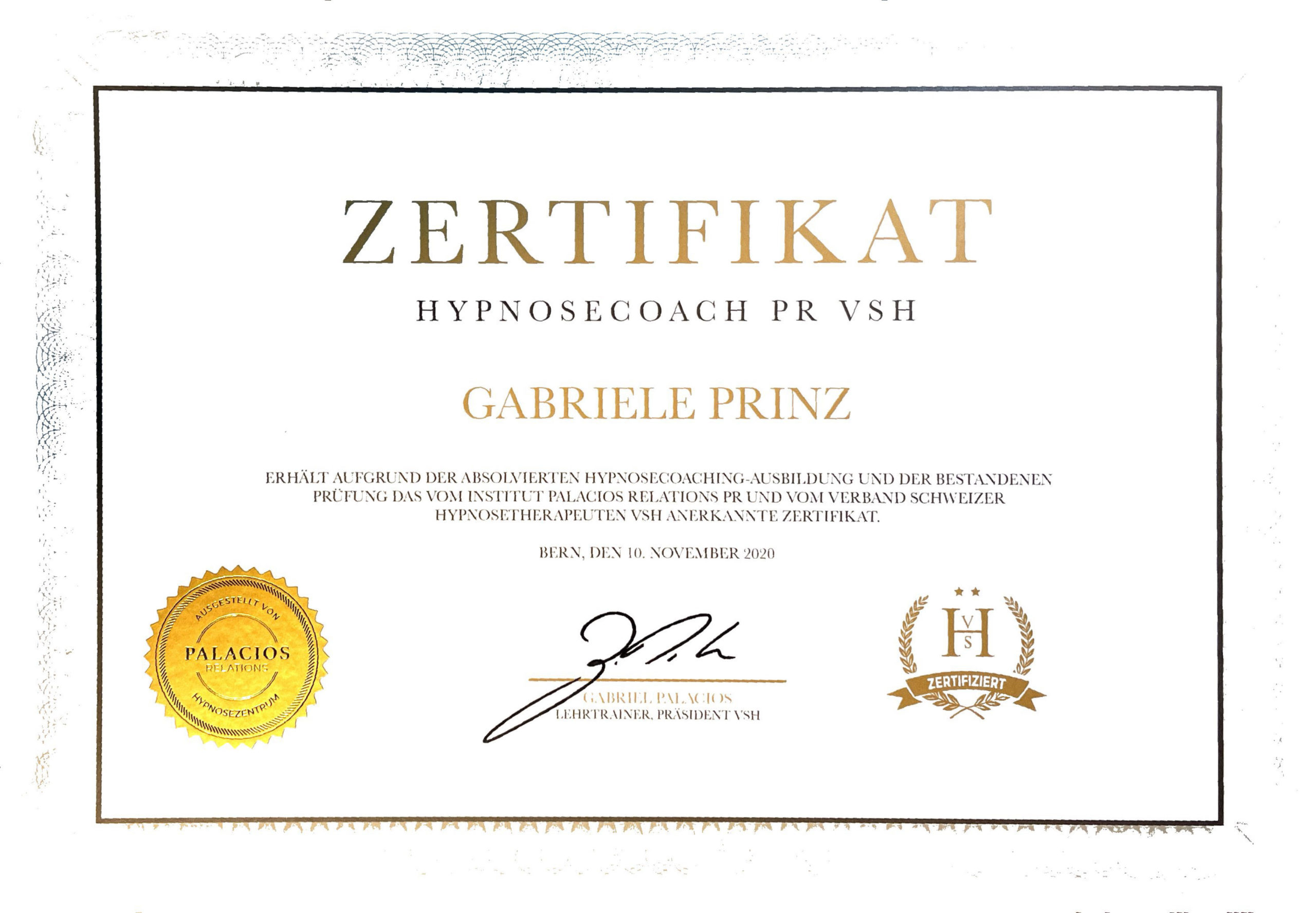 Meine professionelle Ausbildung habe ich bei dem durch die Medien bekannten, bedeutendsten Hypnosetherapeuten im deutschsprachigen Raum und Bestsellerautor Gabriel Palacios absolviert.